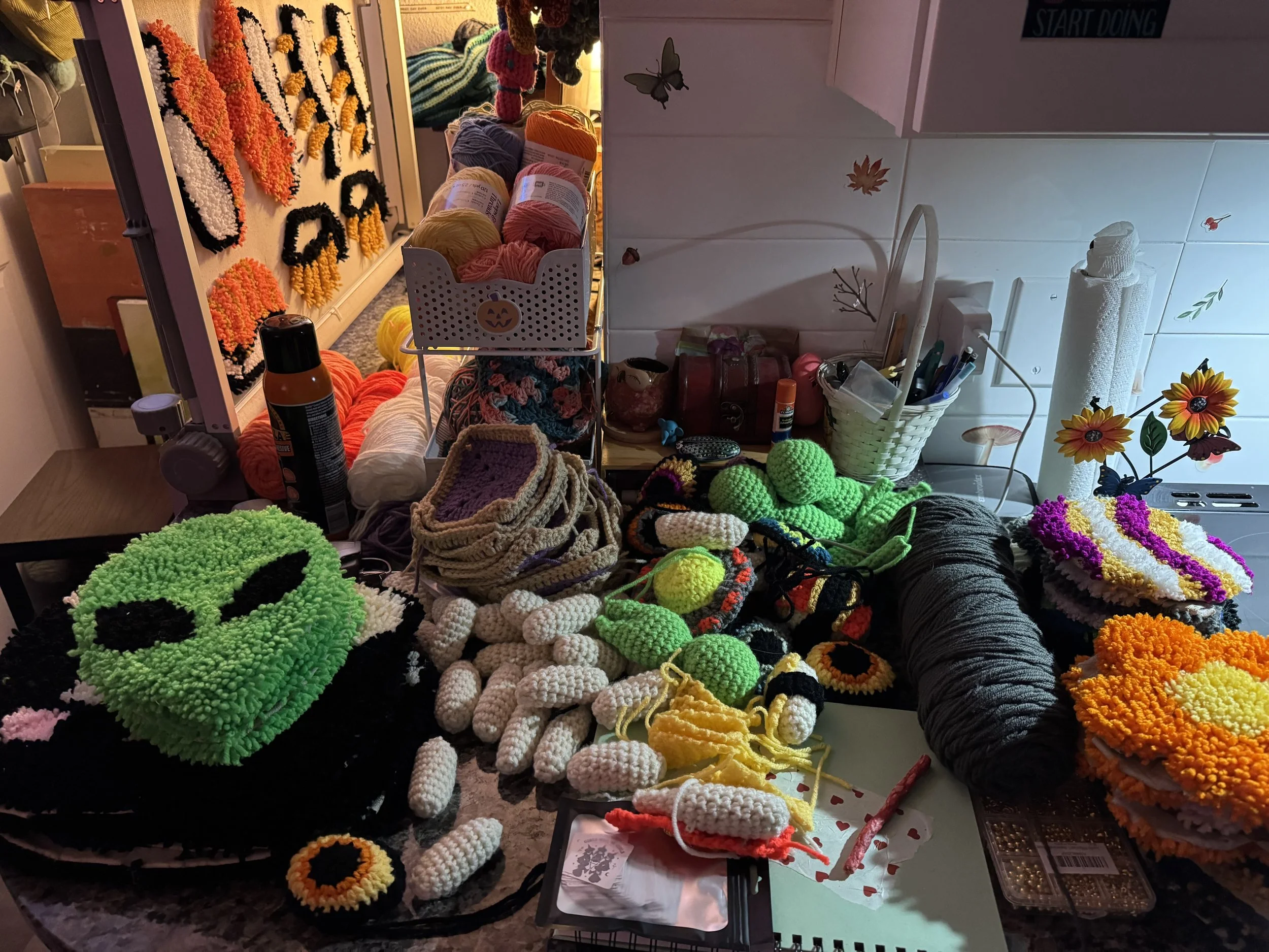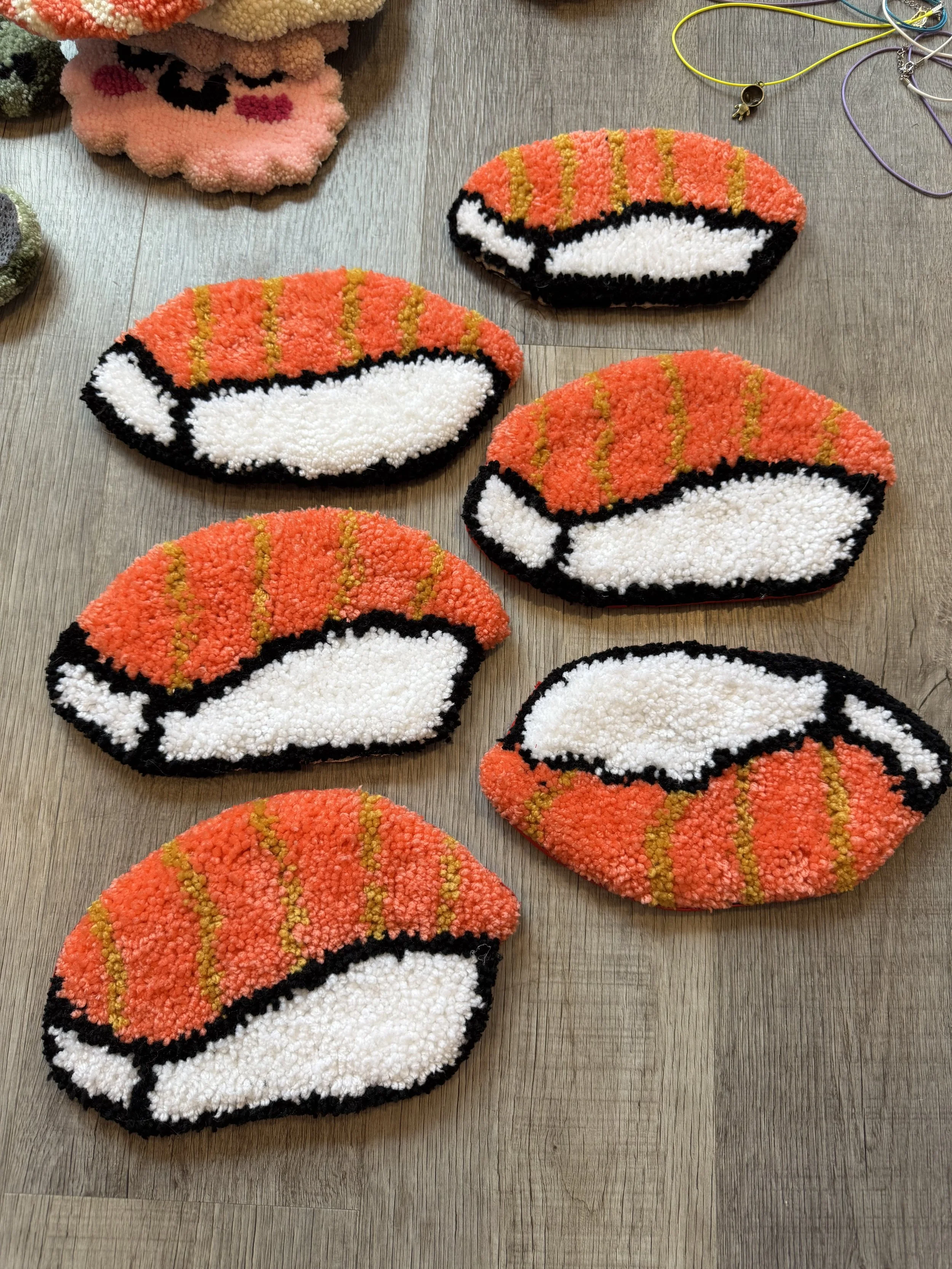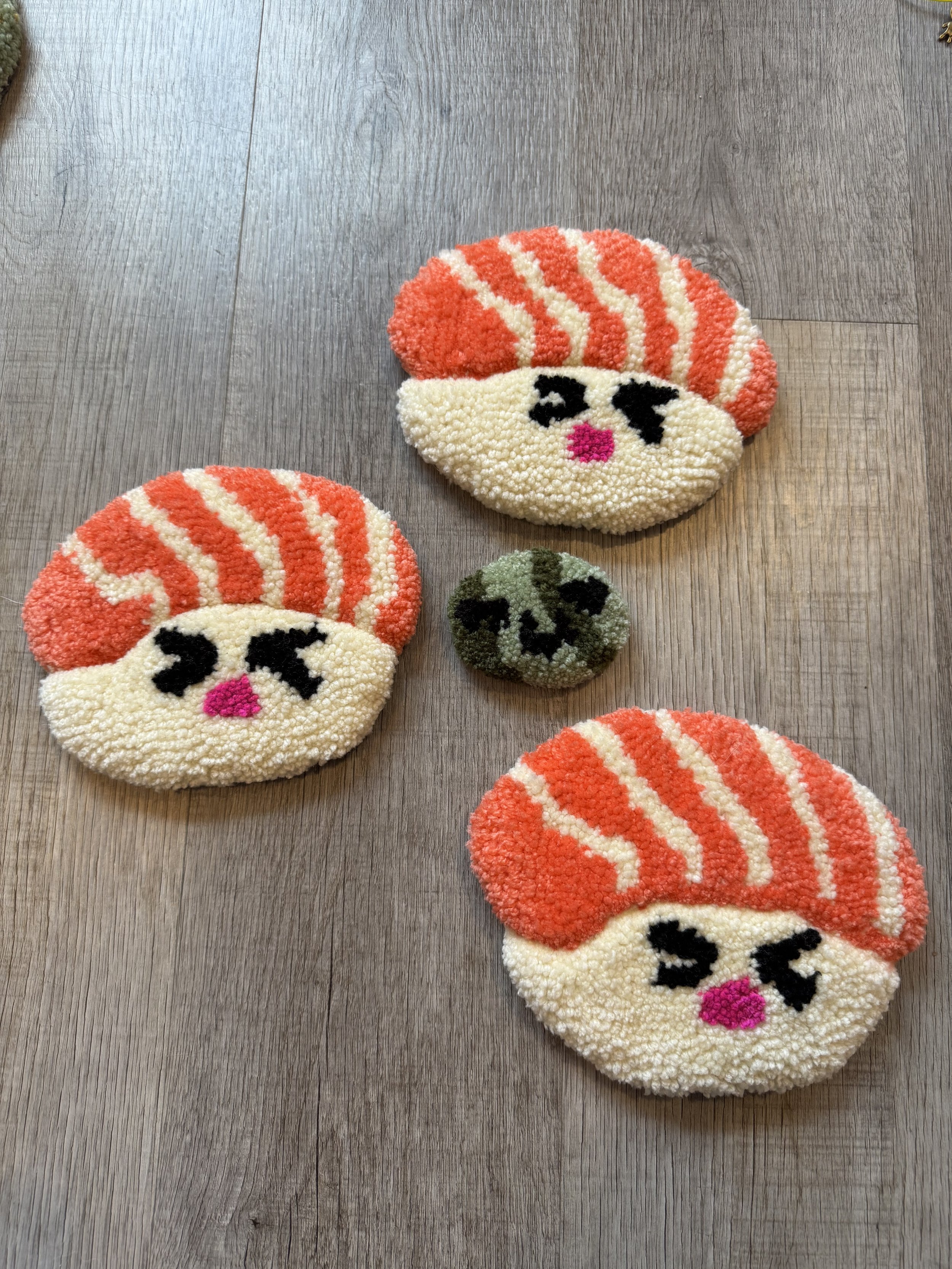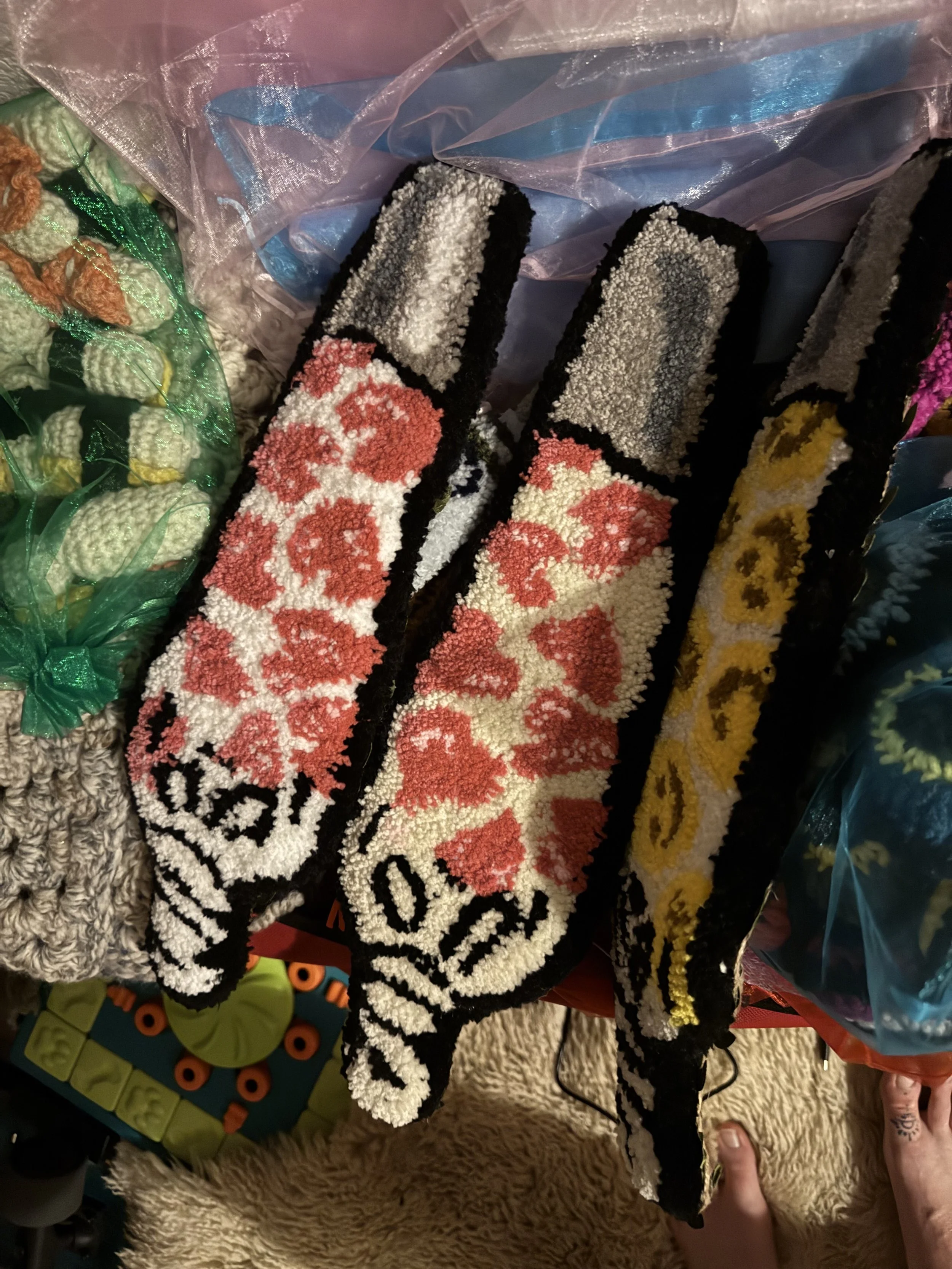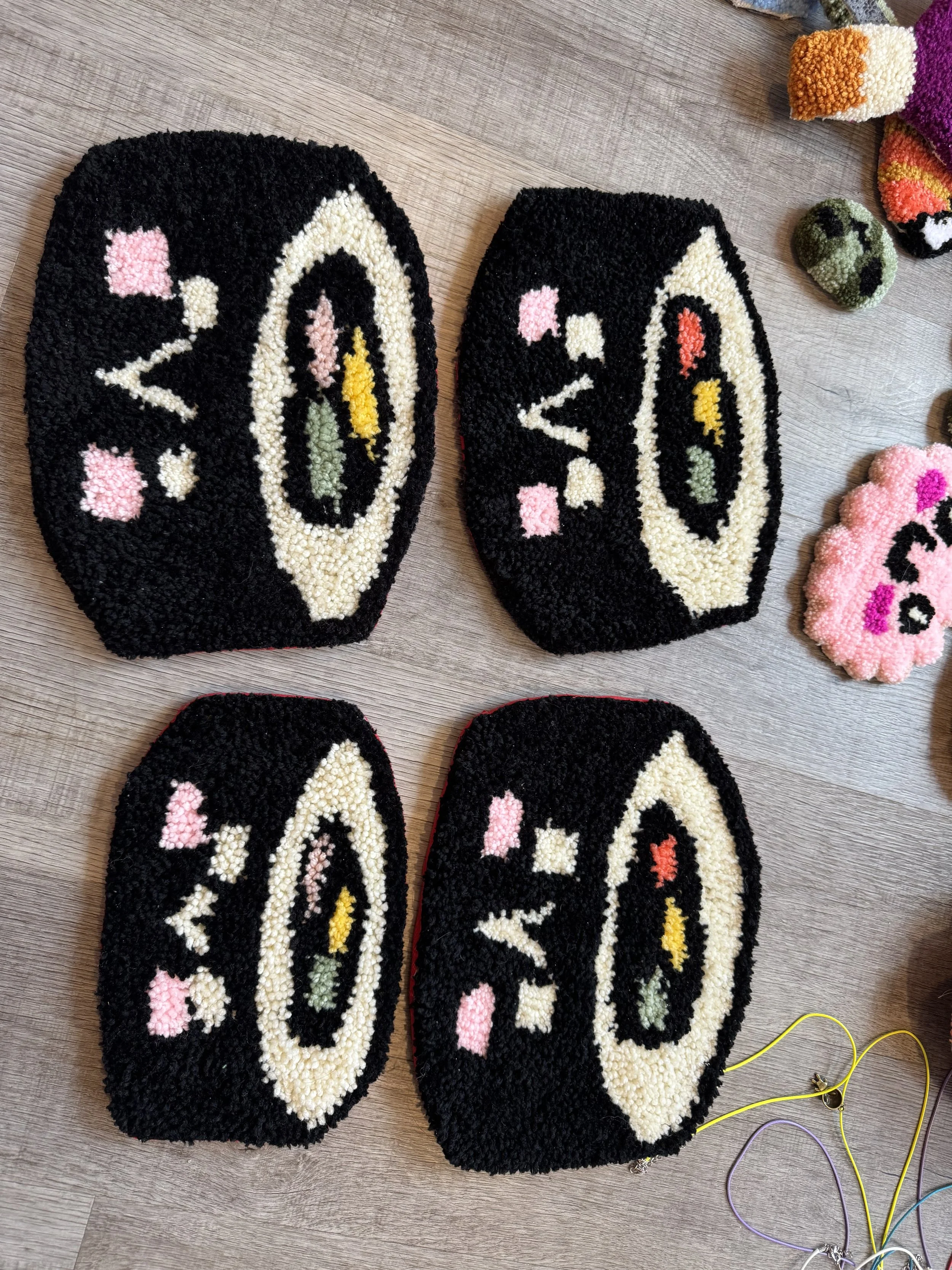 Tiny baby sushi fluffs $10.00 Squishy eyeballs crocheted $10.00 Skater Gurl Rug $120.00 Weed jar yarned up $75.00 Joints by way of yarn $42.00 I believe in hoomans $25.00 The witchening fluffs $25.00 Mushroom pouches $25.00 Grab Bag $100.00 Commissioned Piece $150.00 Pagan Halloween Bag $35.00 "I Believe In Humans" Halloween Bag $30.00 Sushi rugs $35.00 Baby Blanket $175.00 Sold out