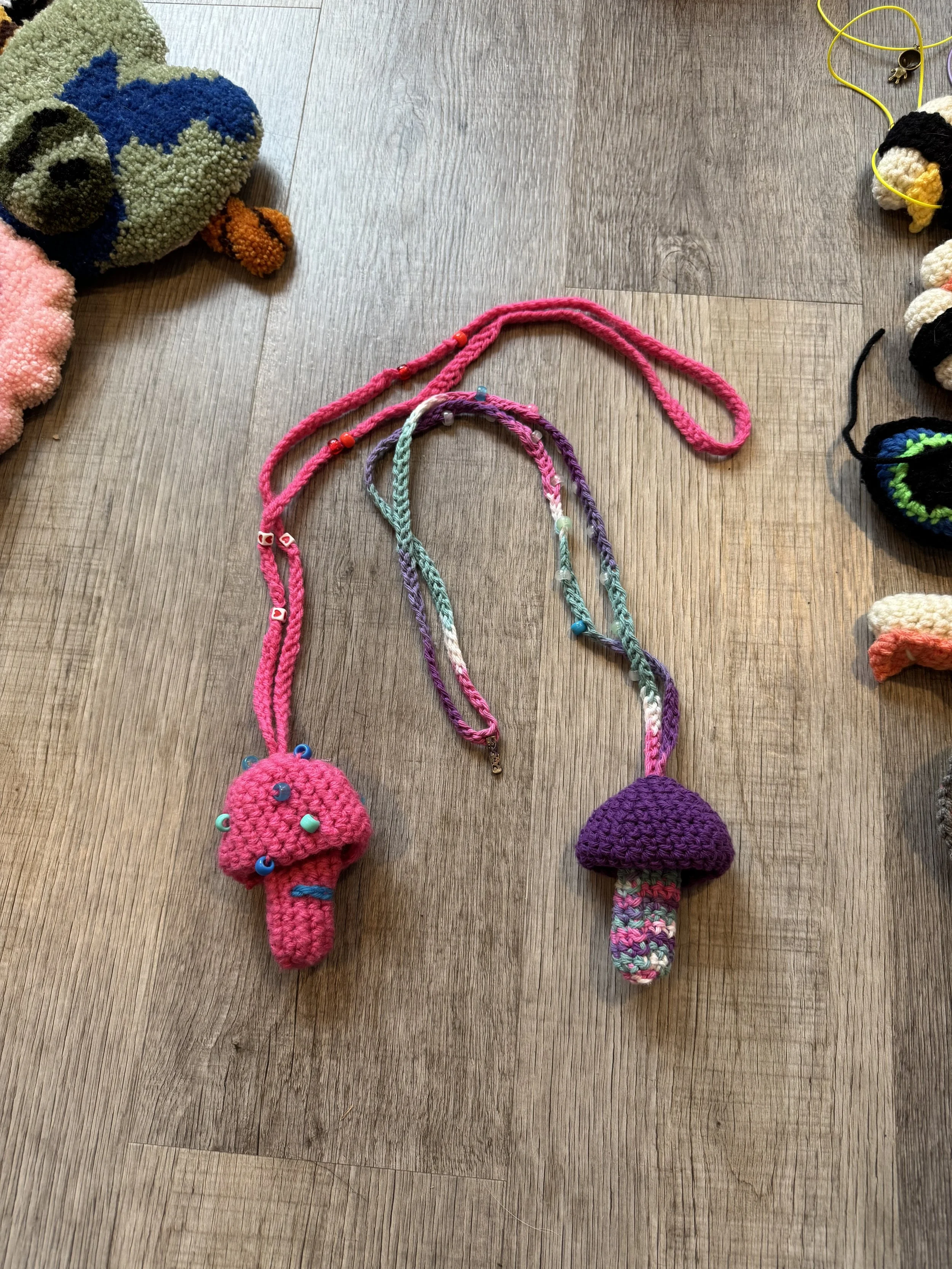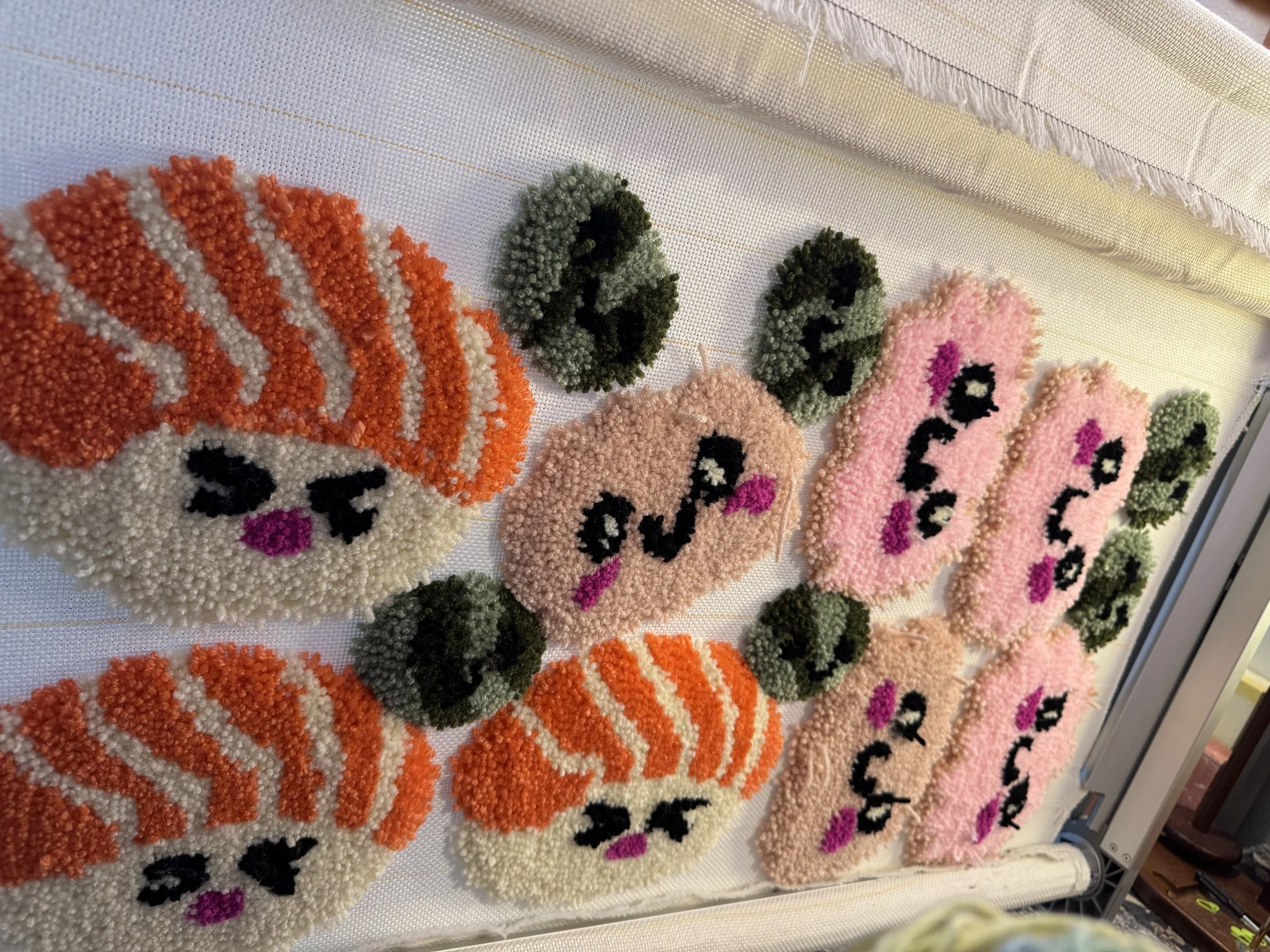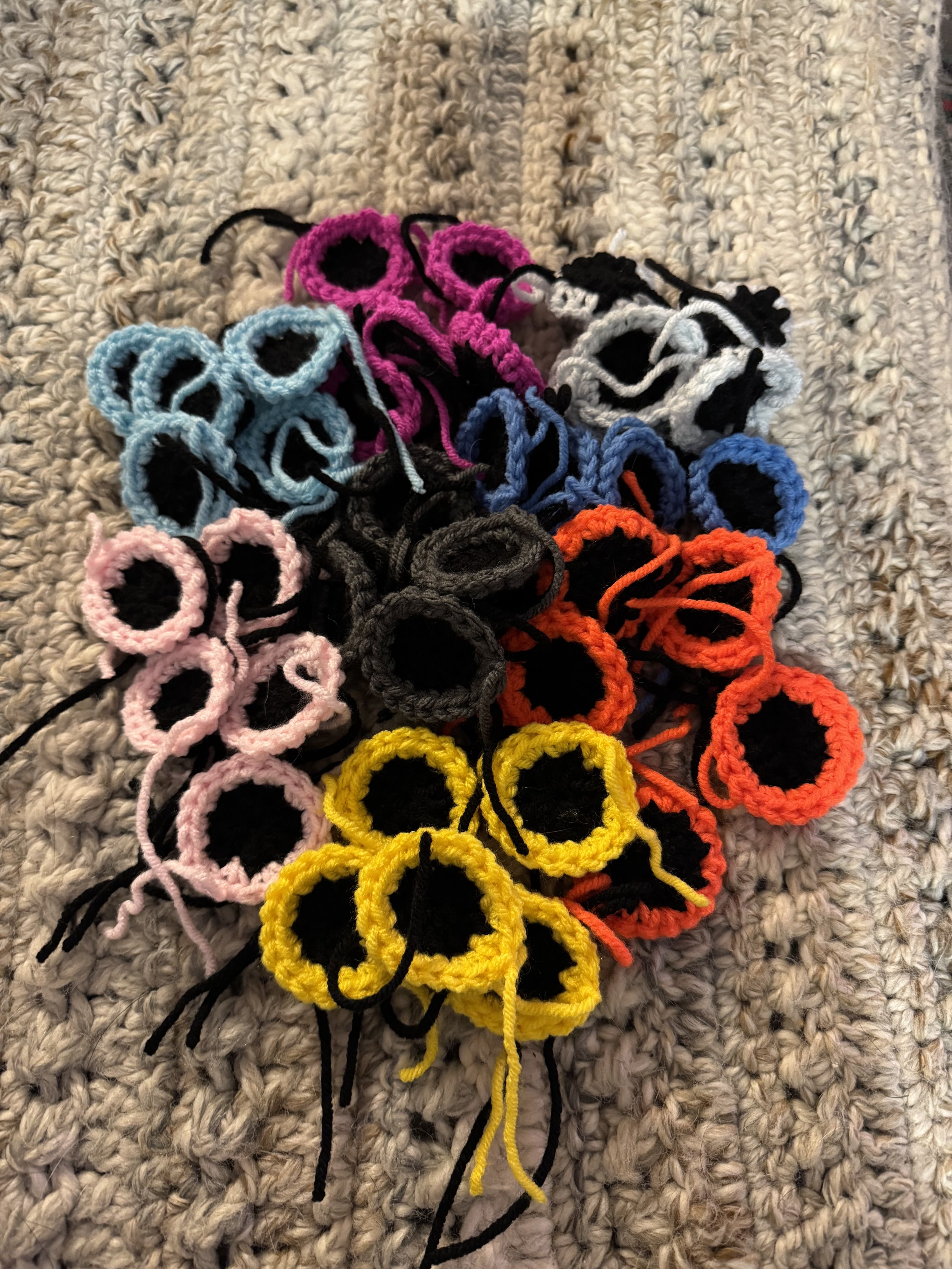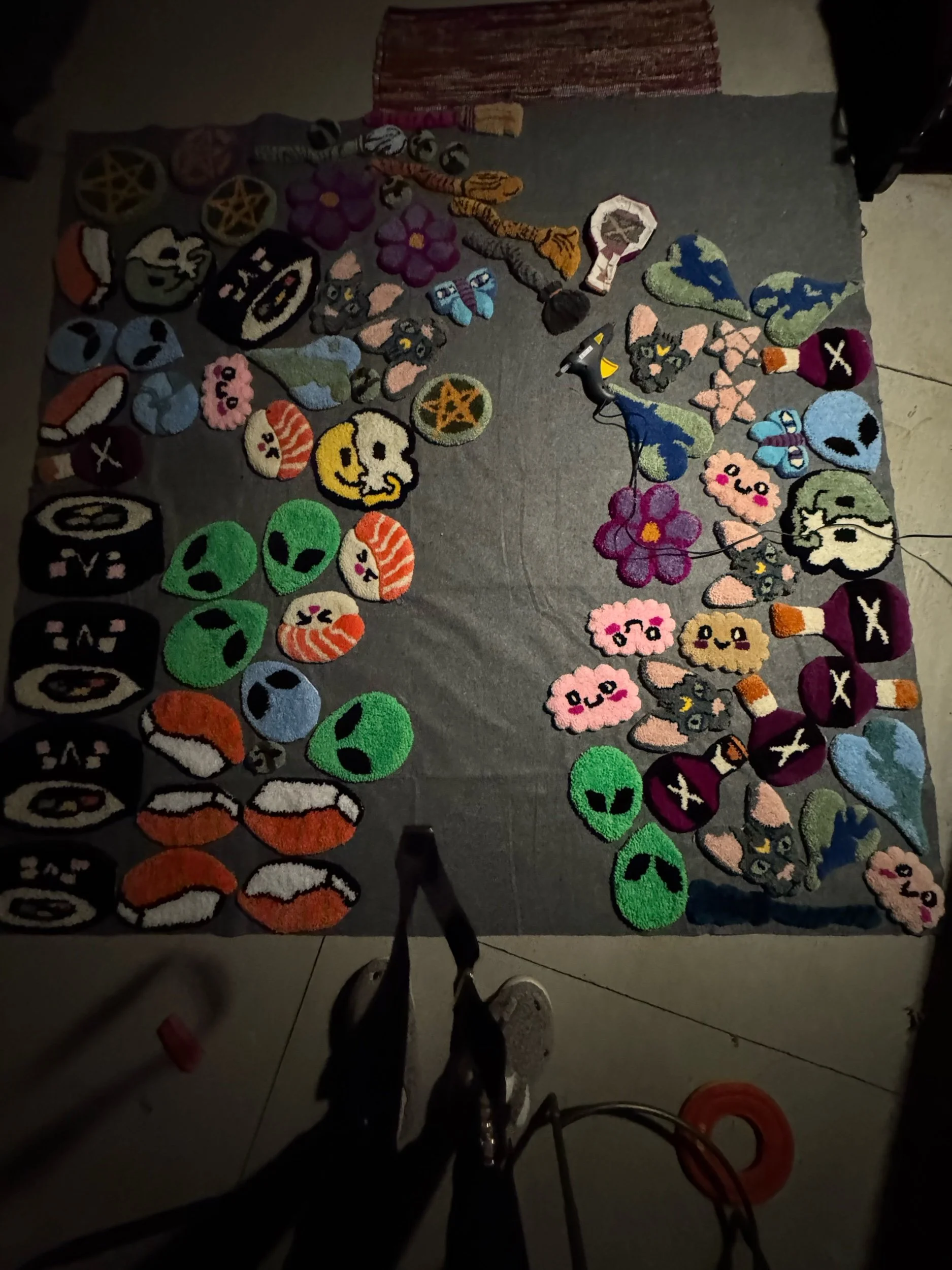 Tiny baby sushi fluffs $10.00 Squishy eyeballs crocheted $10.00 Skater Gurl Rug $120.00 Weed jar yarned up $75.00 Joints by way of yarn $42.00 I believe in hoomans $25.00 The witchening fluffs $25.00 Mushroom pouches $25.00 Grab Bag $100.00 Commissioned Piece $150.00 Pagan Halloween Bag $35.00 "I Believe In Humans" Halloween Bag $30.00 Sushi rugs $35.00 Baby Blanket $175.00 Sold out