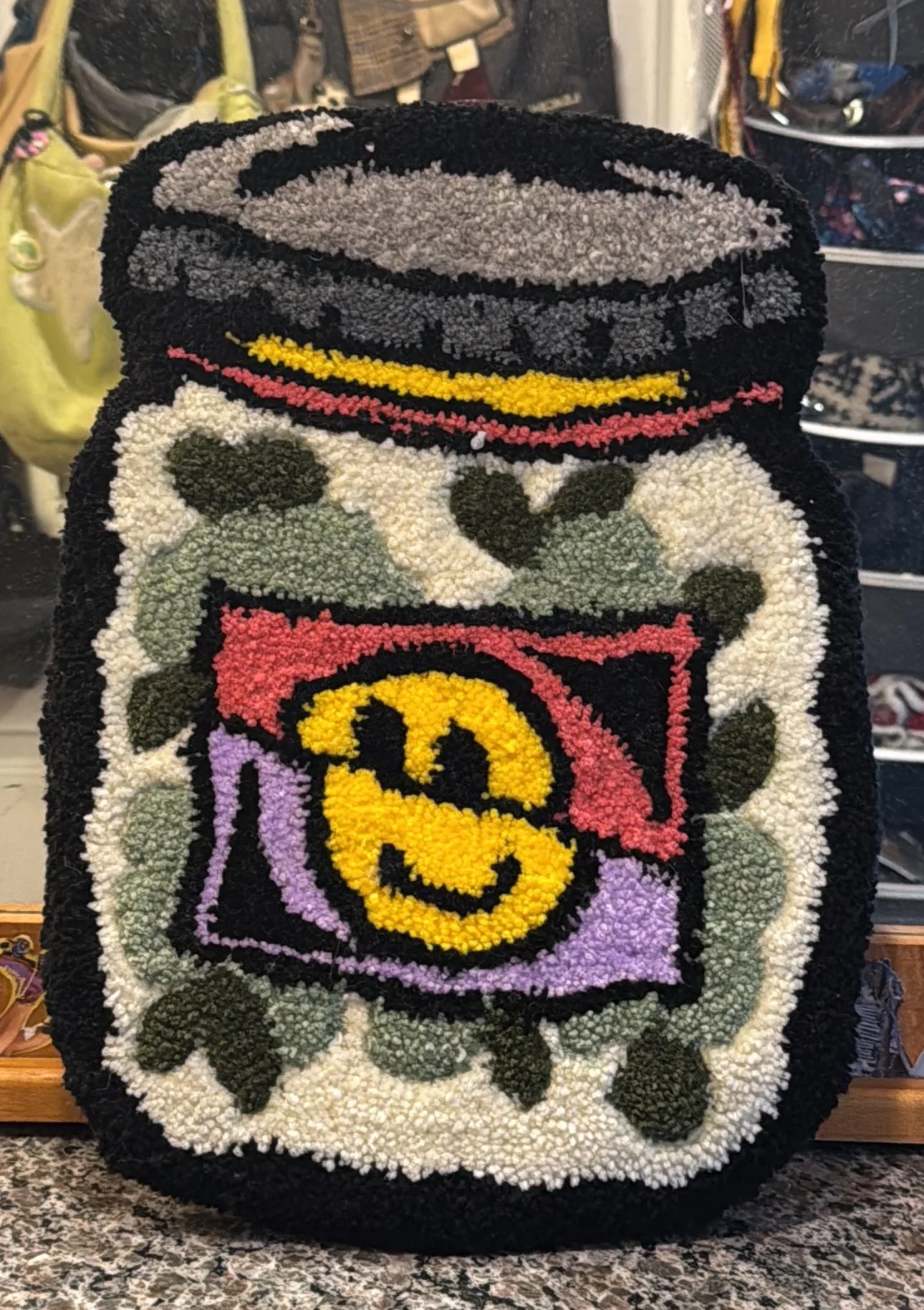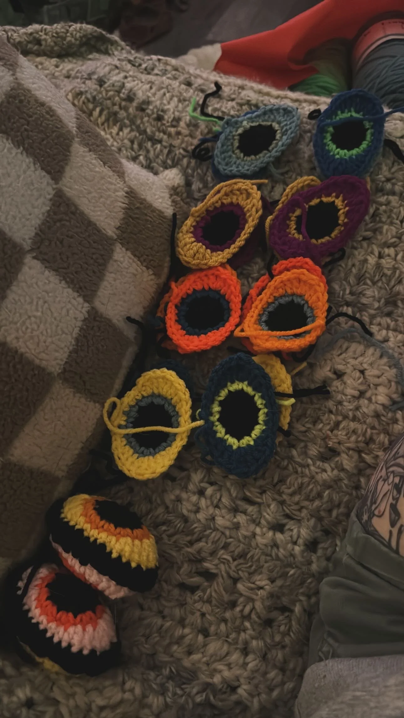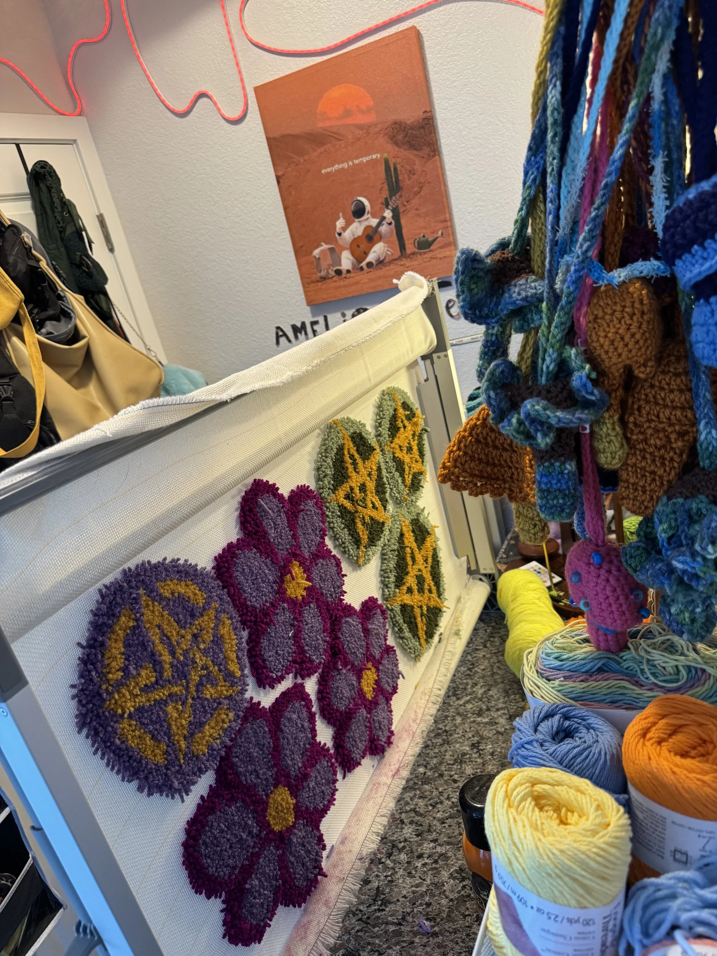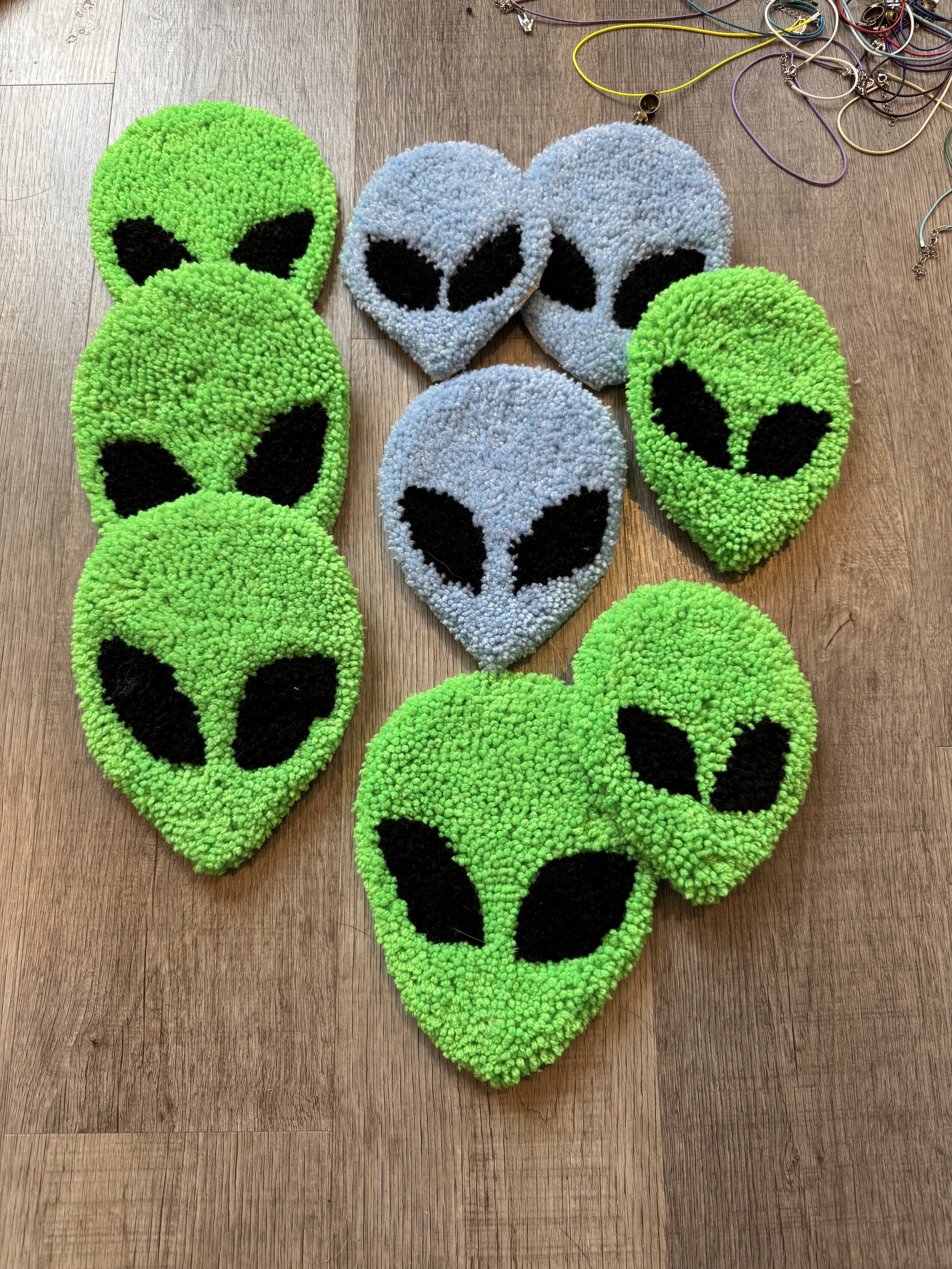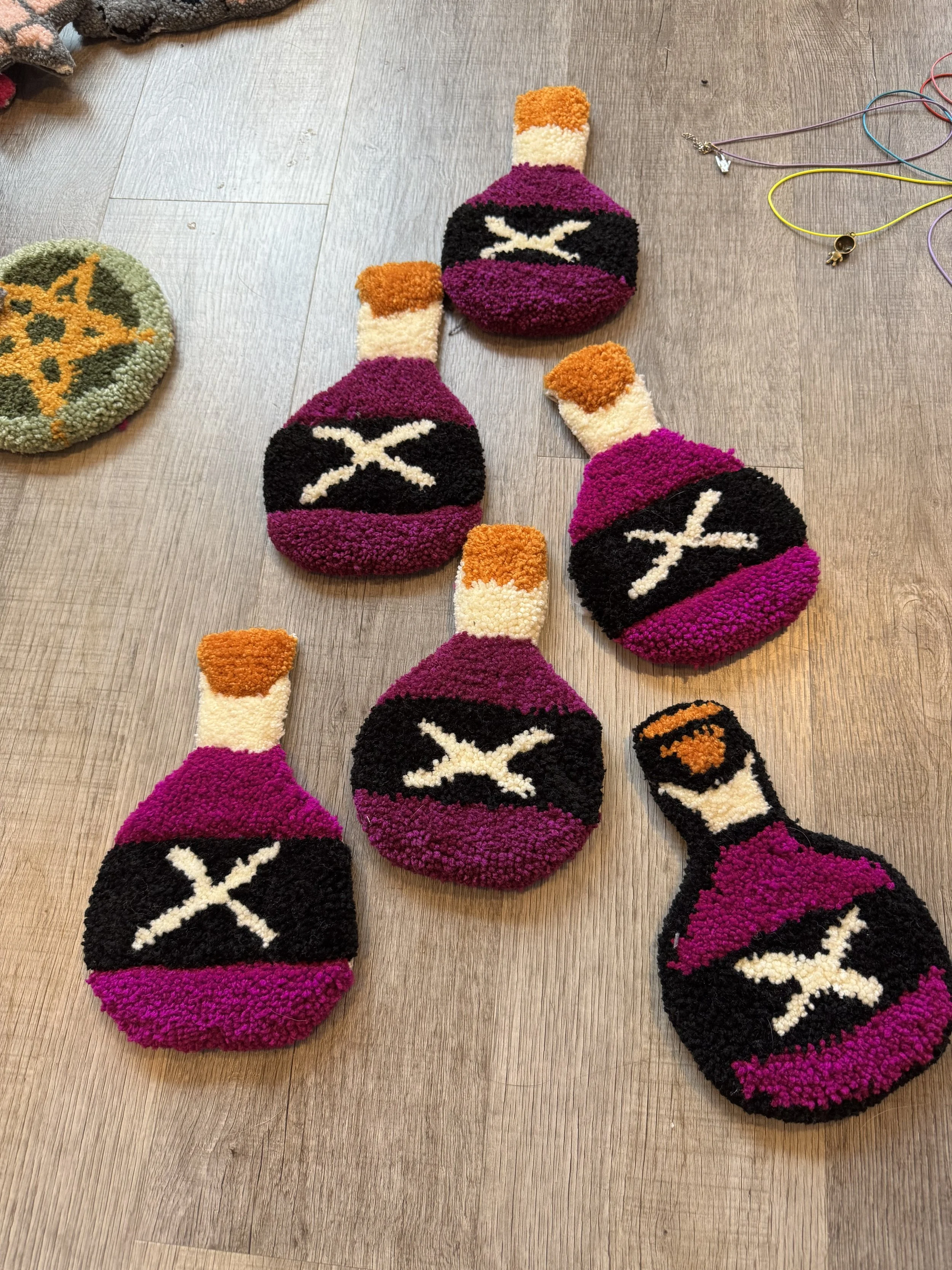 Tiny baby sushi fluffs $10.00 Squishy eyeballs crocheted $10.00 Skater Gurl Rug $120.00 Weed jar yarned up $75.00 Joints by way of yarn $42.00 I believe in hoomans $25.00 The witchening fluffs $25.00 Mushroom pouches $25.00 Grab Bag $100.00 Commissioned Piece $150.00 Pagan Halloween Bag $35.00 "I Believe In Humans" Halloween Bag $30.00 Sushi rugs $35.00 Baby Blanket $175.00 Sold out