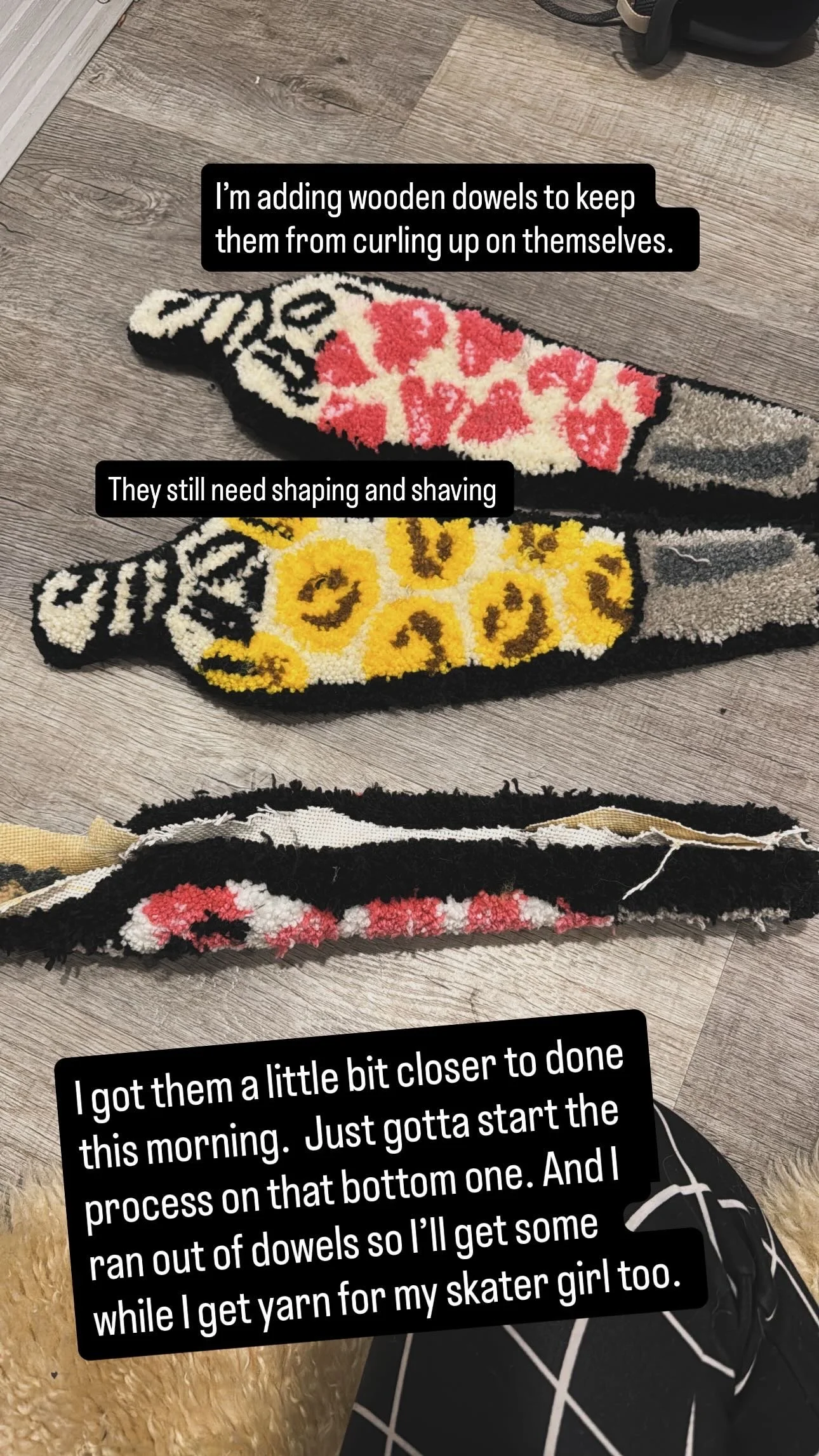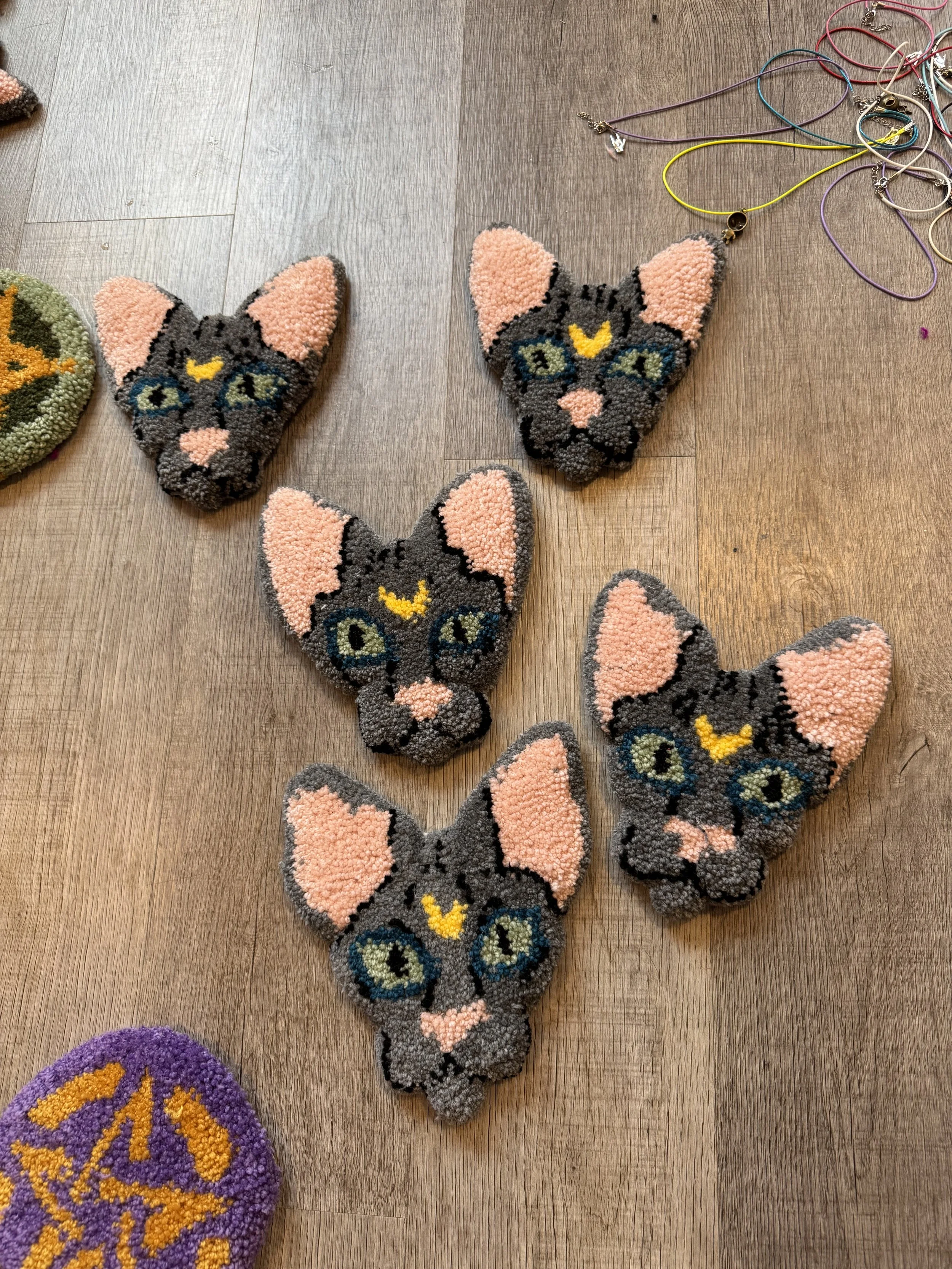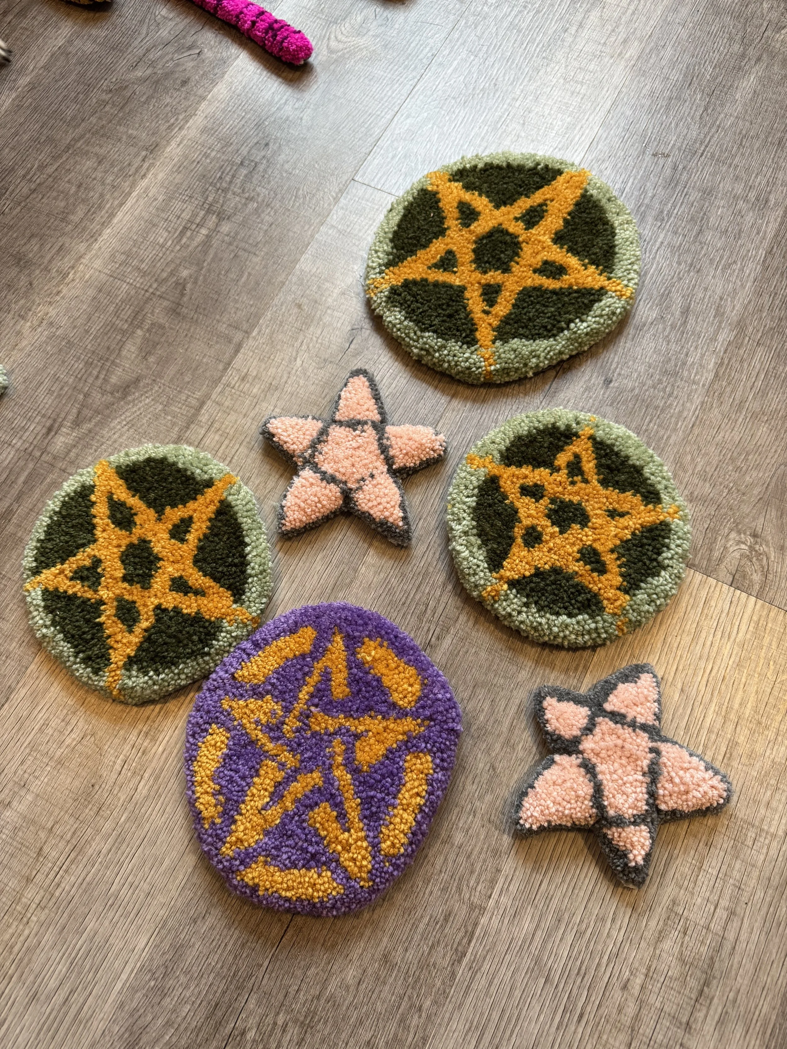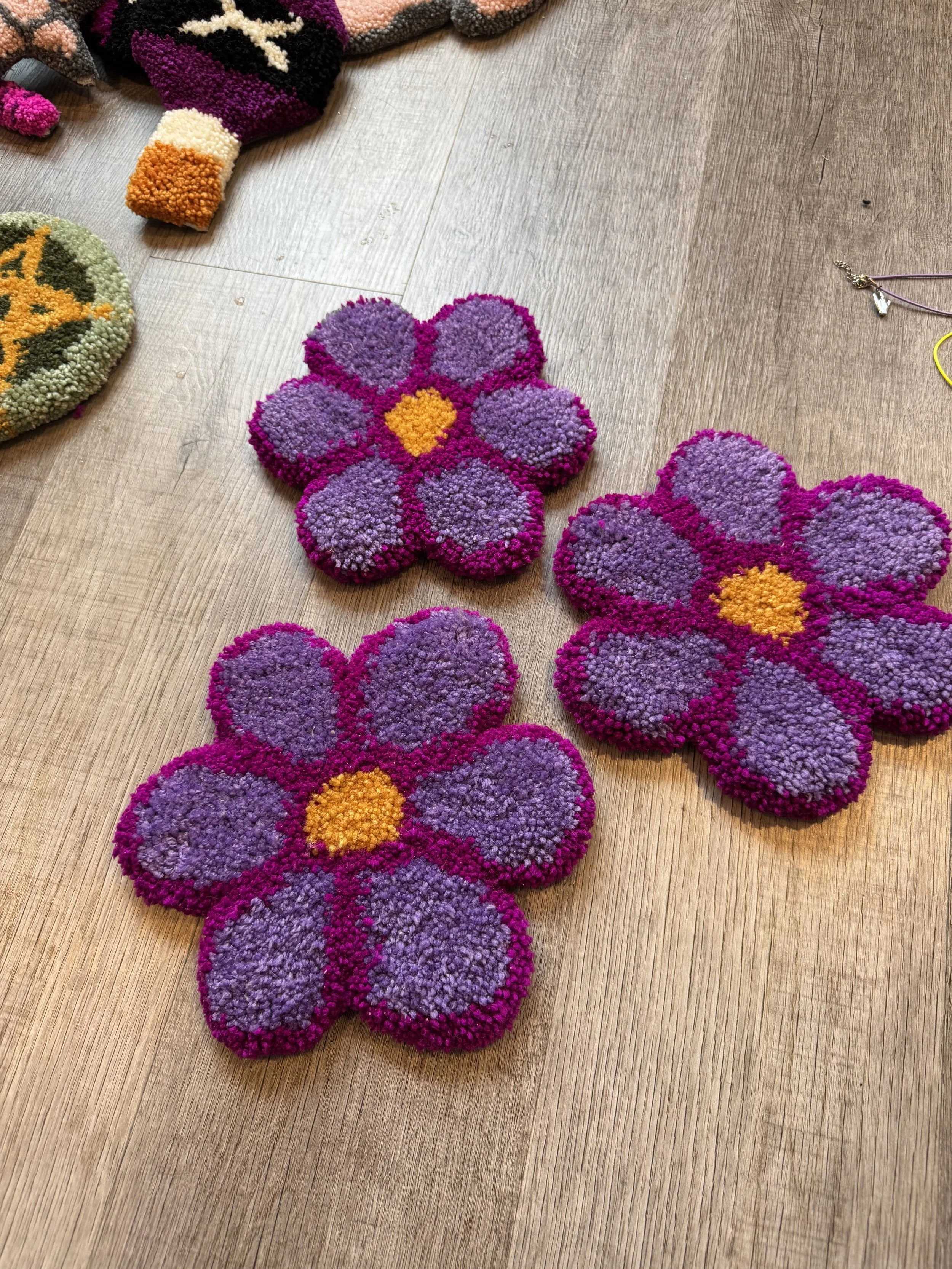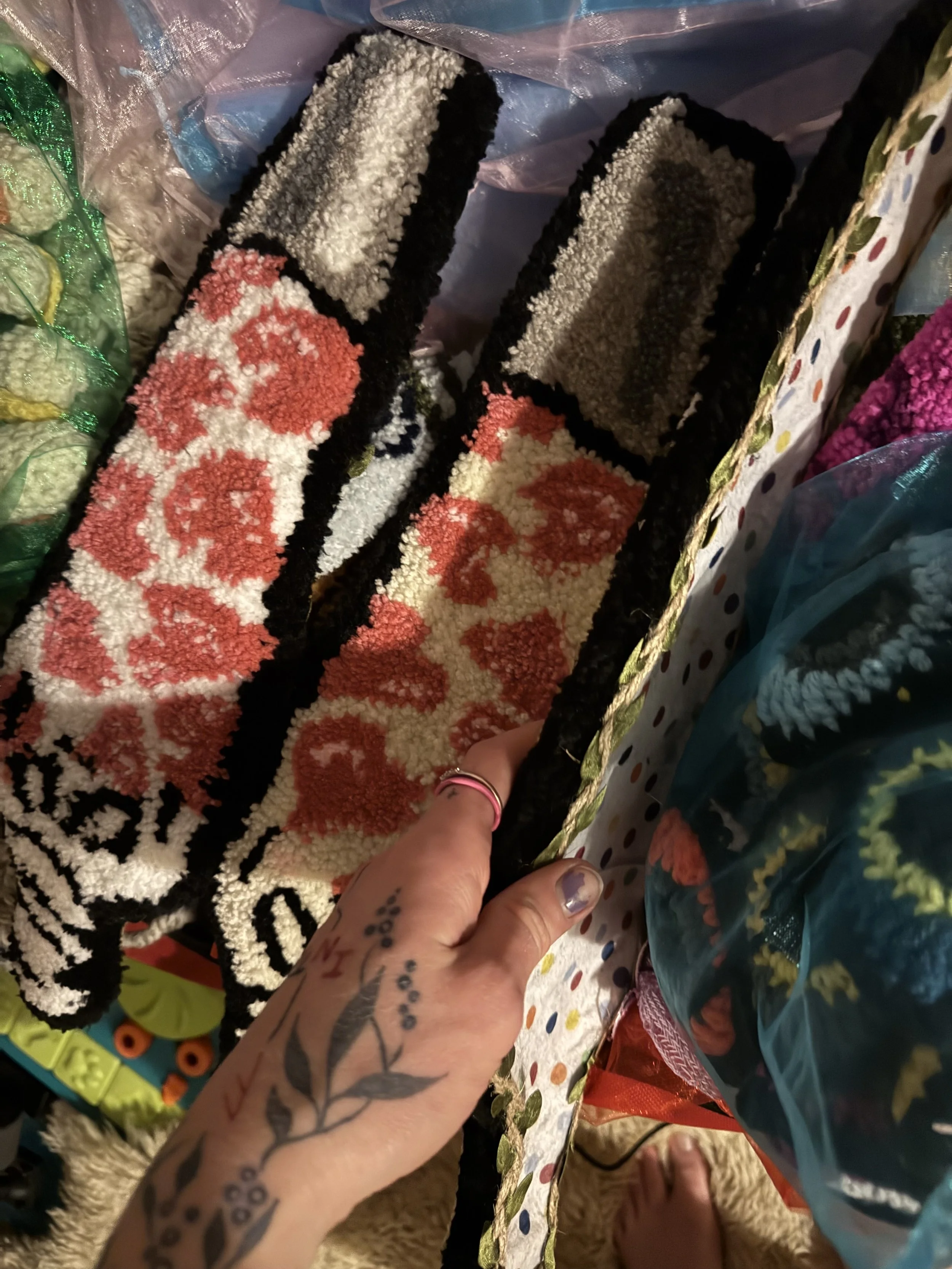 Tiny baby sushi fluffs $10.00 Squishy eyeballs crocheted $10.00 Skater Gurl Rug $120.00 Weed jar yarned up $75.00 Joints by way of yarn $42.00 I believe in hoomans $25.00 The witchening fluffs $25.00 Mushroom pouches $25.00 Grab Bag $100.00 Commissioned Piece $150.00 Pagan Halloween Bag $35.00 "I Believe In Humans" Halloween Bag $30.00 Sushi rugs $35.00 Baby Blanket $175.00 Sold out